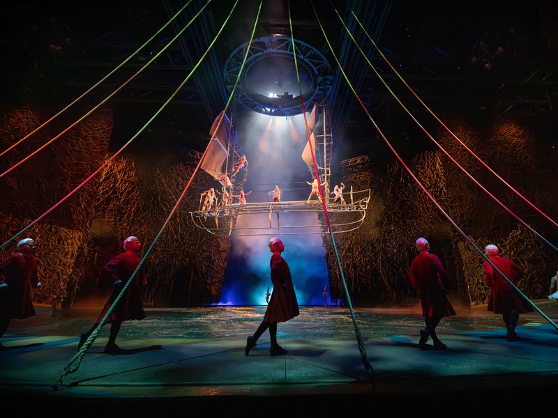 “O” is an ethereal, water-themed Cirque du Soleil masterpiece that immerses you in a dream world of acrobats, synchronized swimmers, divers, and other marine characters performing in, on, and above a 1.5-million-gallon pool. You’ll witness gravity-defying stunts, poetic visuals, and seamless stagecraft as sets descend, transform, and even submerge with performers attached.